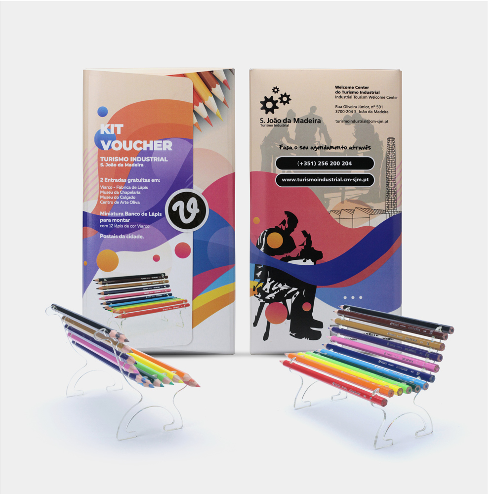 The miniature with the pencils to mount, comes included in a Kit Voucher that includes 2 entries in Viarco, Hat Museum, Footwear Museum and Oliva Art Centre, so that visitors can spend the day among the culture and heritage of São João da Madeira.