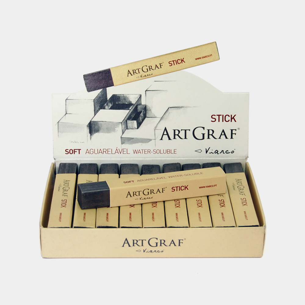 O Artgraf Stick é uma barra de aguarela de grafite com 9cm de comprimento, muito macia, extremamente solúvel e que permite alcançar uma extensa gama de tons de cinza.